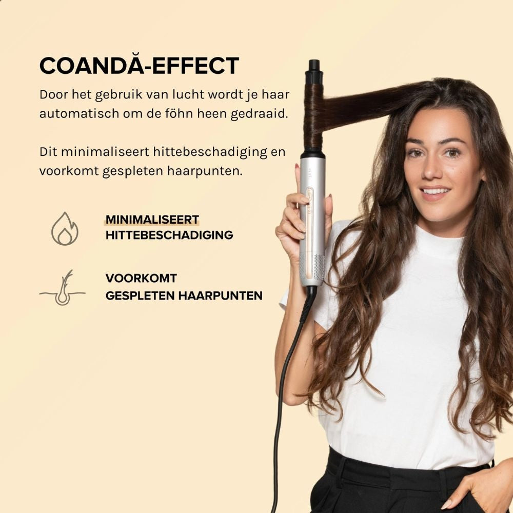 With the MAE Airstyler II Pro, you can give your hair a salon-quality makeover. This powerful airstyler isn't just a hairdryer: thanks to the innovative Coandă effect, it gently curls, dries, and styles your hair. Negative ions reduce frizz and static, leaving your hair shiny, healthy, and silky-smooth. In short: an absolute must-have for every girl looking for the Dyson dupe.