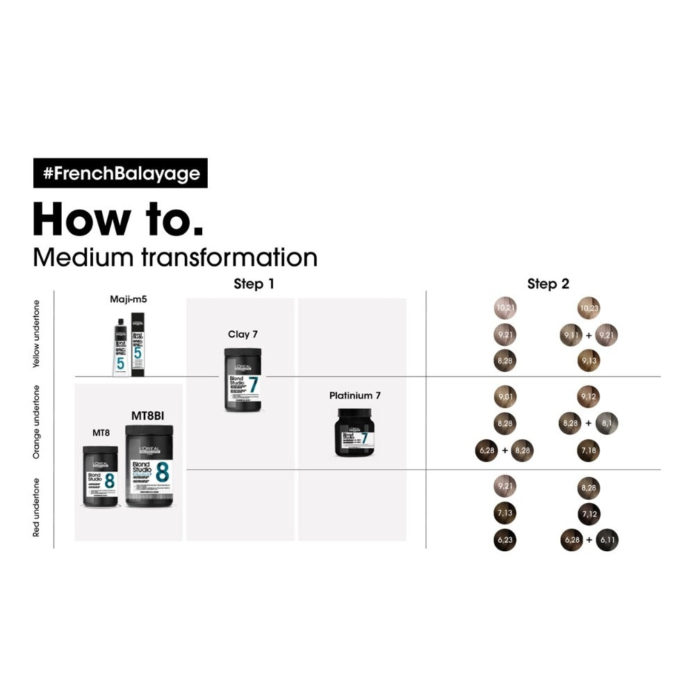 Always protect your hands by wearing gloves when bleaching your hair. Use Platinum Lightening Paste exclusively with L'Oreal Blond Studio Developer . Use the mixing ratio 1:1 and mix with a spatula until smooth. Do not use extra heat. Apply the mixture to dry hair and leave on for up to 50 minutes depending on the desired result.