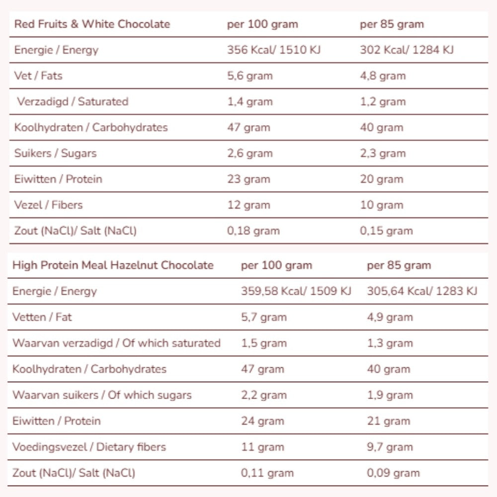 With the Cabau Lifestyle High Protein Meal Set you have a nutritious breakfast in 30 seconds. The Cabau Lifestyle High Protein Meal Set offers four delicious flavors: Vanilla , Red Fruits , Cookies & Cream and Apple Pie . These meal shakes are designed to support you in a healthy lifestyle, weight management and muscle recovery. Are you a busy bee or a conscious power woman looking for a nutritious and easy meal solution? Then these meal shakes are ideal!