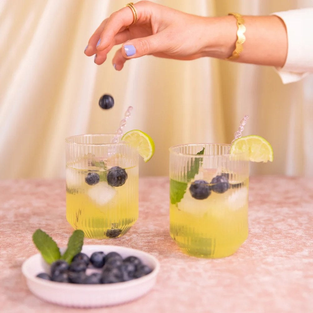 • Natural lemon flavour, turmeric & blue spirulina – for a fresh taste and colour