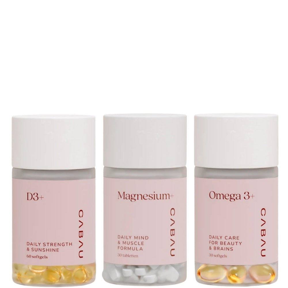 The Cabau Lifestyle Vitamins Set is your daily basis for a strong body, a clear mind and a healthy immune system. This smart combination of vitamin D3, magnesium and omega 3 provides your body with everything it needs to stay in balance. No complicated schedules or separate jars: just three powerful supplements in one handy set, specially tailored to the active woman.