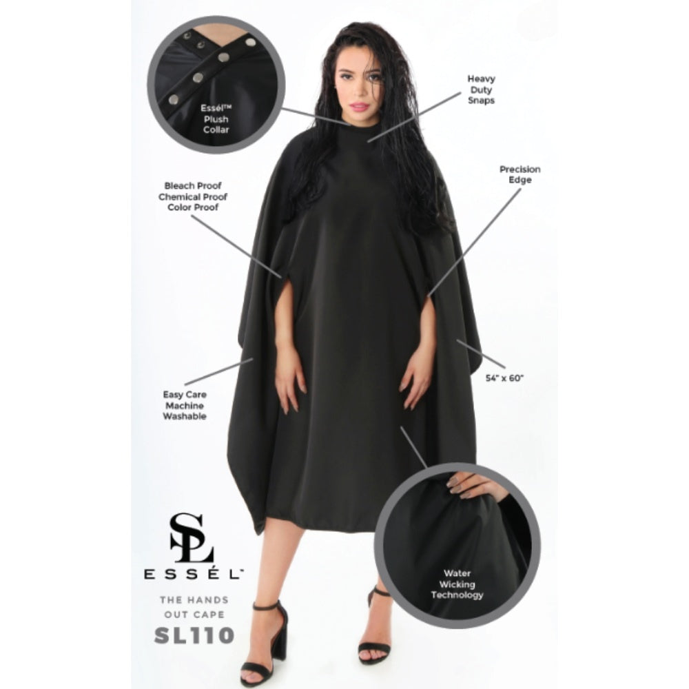 Essel The Hands Out Cape is the ideal cape for a comfortable haircut, for both the client and the hairdresser! With handy openings for the hands, this cape not only offers optimum protection against loose hairs, but also the freedom to hold a phone or magazine. Perfect for the salon or for professional use at home - the Essel The Hands Out Cape makes every haircut or colouring treatment more pleasant and efficient for everyone.