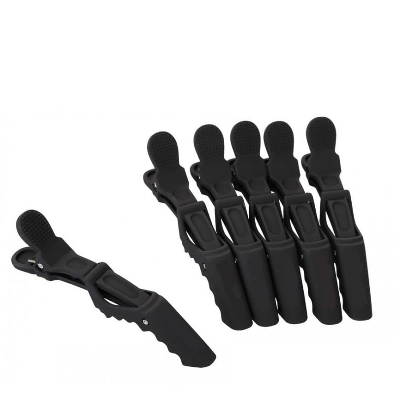 The Lussoni Croco Clips are ideal to make the work of any hairdresser easier. The alligator clips with specially designed shape easily hold even thick and heavy strands of hair. The hair clips are made of durable non-slip material. Lussoni 's clips easily grab and hold sections of hair without damaging it. The clips are made of durable material with a soft-touch finish. The package contains 6 distribution clamps with a length of 11 cm each.