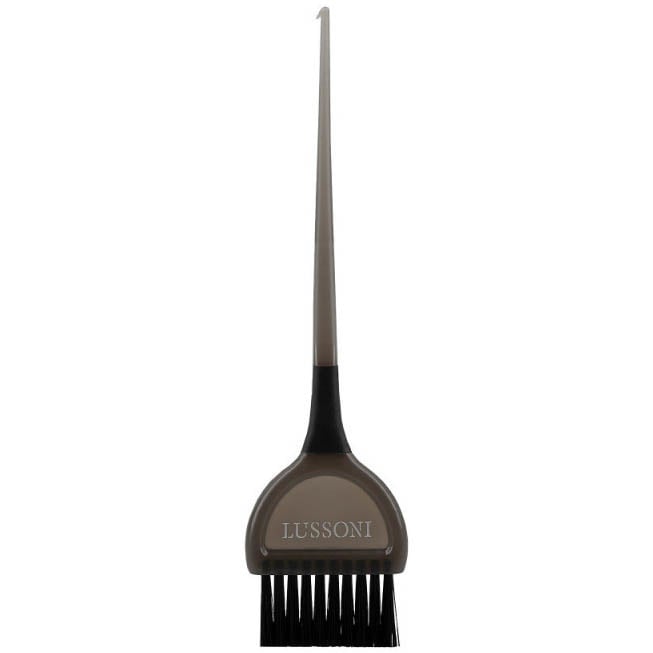 The Lussoni Paint Brush 011 is a paint brush with elastic nylon bristles, which facilitate the even and precise application of the hair dye. The ergonomic handle makes it easy to divide the hair into strands and a special non-slip elastic guarantees a secure grip. The non-slip rubber ensures comfort and a firm grip while working. The brush from Lussoni is made of durable material and easy to keep clean. Dimensions of the bristles: 4.8 cm wide, 2.7 cm high.