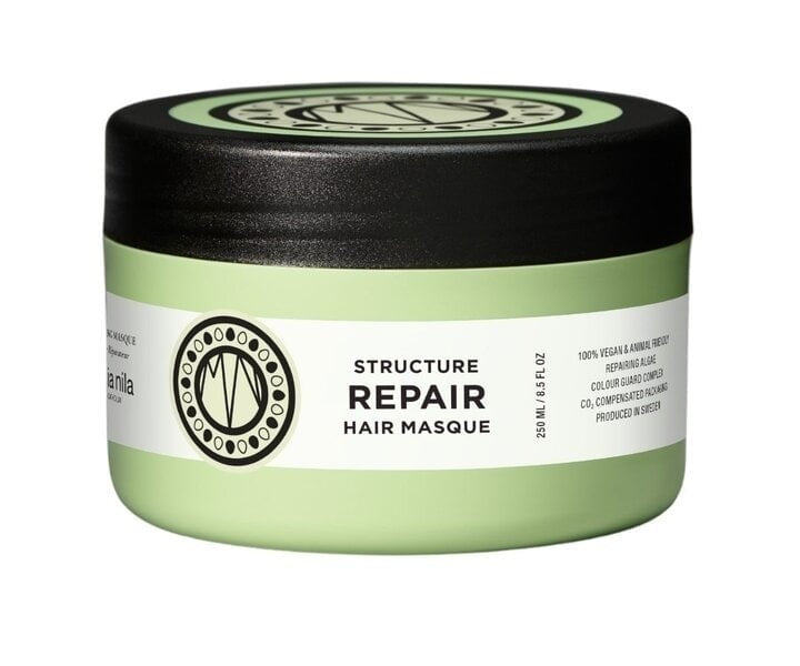 The Maria Nila Structure Repair Set is specially formulated for damaged, dry, or chemically treated hair. It contains nourishing seaweed extracts that restore hair's natural strength, softness, and shine. The Maria Nila Structure Repair Set is made entirely from plant-based ingredients. The Color Guard Complex protects the hair and reduces color loss. These products are sulfate- and paraben-free.