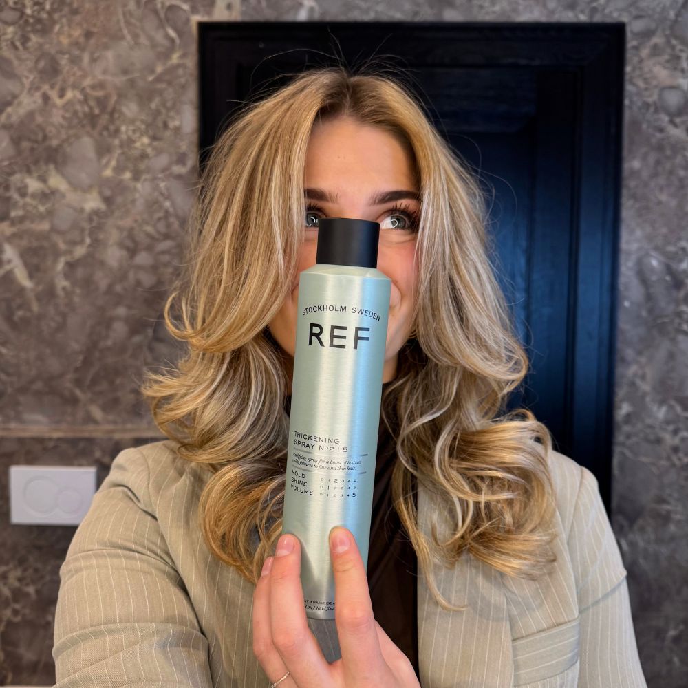 • REF Thickening Volume Hairspray: Schud de flacon en houdt op ongeveer 20-30 cm afstand van je haar. Spray het gelijkmatig bij de haaraanzet en over je haar om het in model te houden. Föhn je haar vervolgens in model.