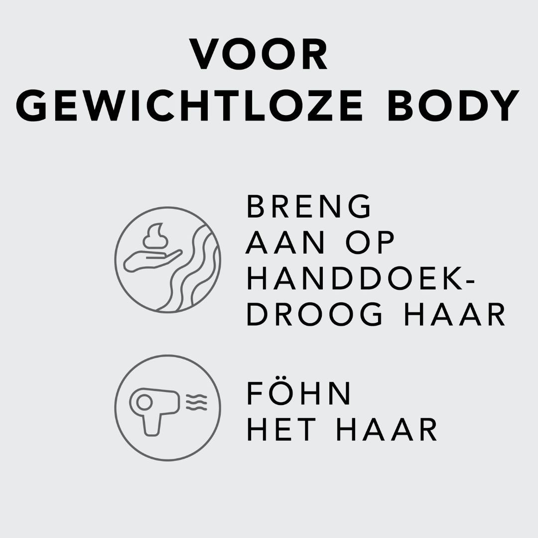 Step 2: Work the foam through your hair, starting at the roots and working your way to the ends. This can be done on both towel-dried and dry hair. For maximum volume, focus on the application at the roots on dry hair.