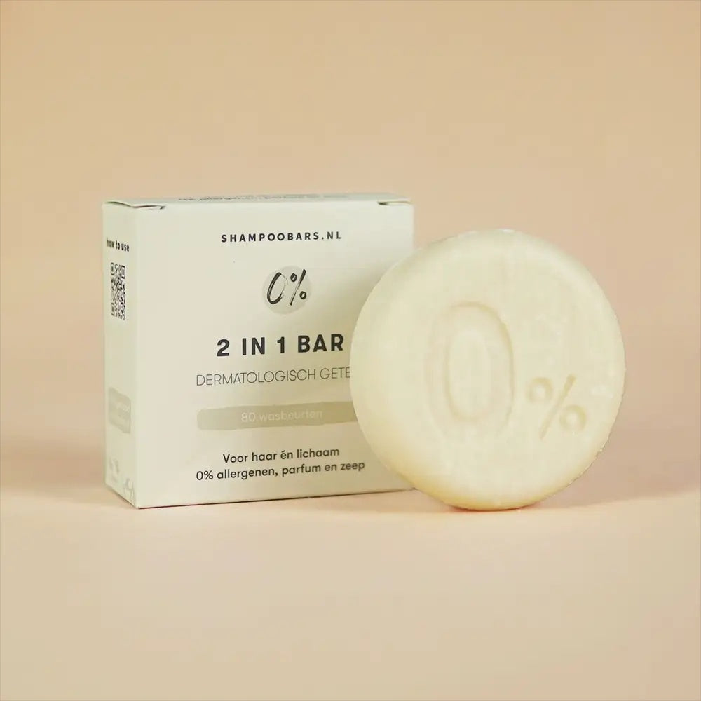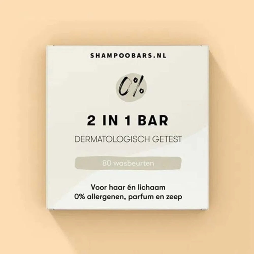 The ShampooBars 0% 2-in-1 Bar is the ultimate combination of shampoo and conditioner in one handy bar. This versatile bar provides deep cleansing and deep nourishment for your hair, leaving it feeling soft, shiny and healthy. All that with 0% allergens, perfume, soap and plastic. The bar is therefore perfectly suitable for people with sensitive skin!
