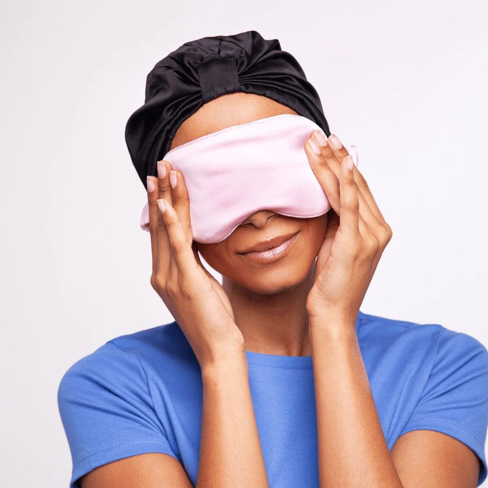 Umberto Giannini Hey Sleepy Head Accessories Set contains everything for silky soft hair and a perfect night's sleep. The set contains a vegan hair wrap, 2 vegan scrunchies and a vegan eye mask. With this set, your hairstyle is optimally protected while you sleep and you can enjoy a good night's sleep. The products prevent split ends and ensure frizz-free hair. It is suitable for all hair types and provides a beautiful shine in the hair. It is the perfect set and gift for all sleepy heads around you!