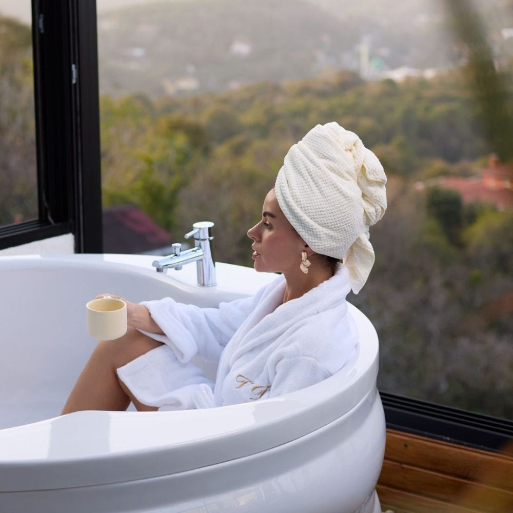 The combination of polyester and polyamide ensures soft and effective hair towels. Polyester contributes to moisture regulation and durability, while polyamide provides extra softness and elasticity.