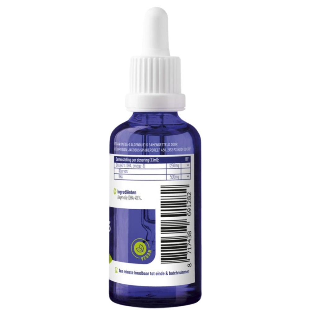 Vitakruid Vegan Omega-3 1250 TG Algal Oil is perfectly dosable thanks to its liquid formula. The many health benefits of Omega-3 are made available to everyone thanks to its vegan formulation. For example, DHA, the essential omega-3 fatty acid, is good for the brain, vision, and triglyceride levels. Omega-3 is also an important nutrient for pregnant women, as it contributes to the development of the eyes of the fetus and of breastfed infants. Thanks to its plant-based formula, Vitakruid Omega-3 is also highly sustainable. The omega-3 is derived from algae. These algae are grown under optimal conditions, meaning a small amount of algae is needed for a high-quality yield of omega-3 in the formula. Naturally, only the most biologically active form has been used for this vegan Omega-3 so that the body benefits most from the many health benefits of Omega-3.