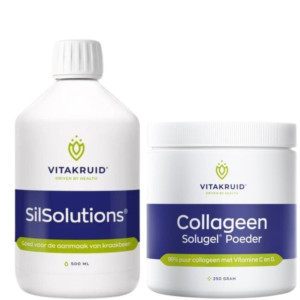 Het Vitakruid Beauty Bundel helpt je natuurlijke schoonheid te bevorderen. De producten hebben een positieve werking op de conditie van de huid, ons grootste orgaan. Zo wordt de stevigheid en elasticiteit van de huid verbetert, wat een positief effect heeft op tekenen van huidveroudering. De voordelige bundel bevat ook de populaire best seller van Vitakruid: SilSolutions. Dit supplement draagt bij aan de vorming van collageen en werkt daarom perfect samen met de Collageen Solugel. Daarnaast wordt het haarvolume en de gezondheid van haar, huid en nagels verbeterd.