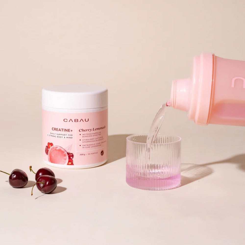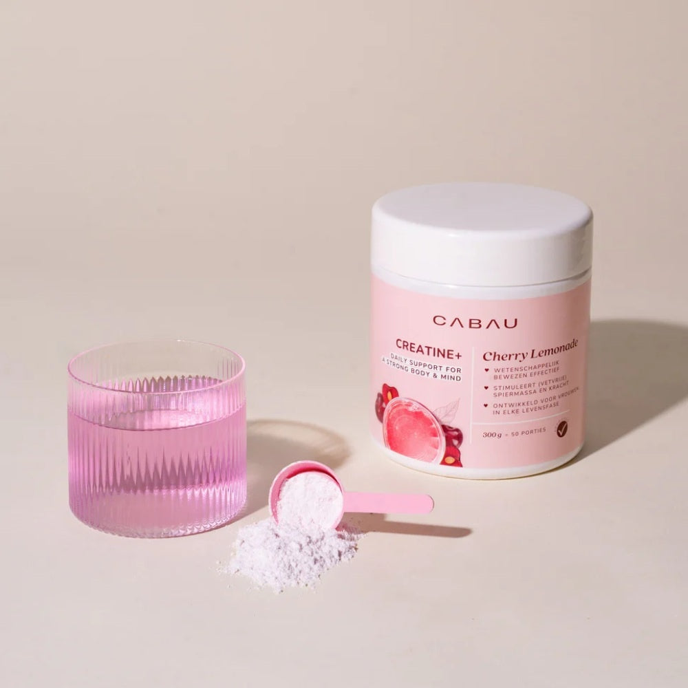 Wil jij meer uit je workouts halen, sneller herstellen én makkelijker voldoende water drinken? Dan is Cabau Creatine+ Cherry Lemonade jouw nieuwe favoriete dagelijkse drankje! Deze frisse, fruitige limonade bevat puur creatine monohydraat en is speciaal ontwikkeld voor vrouwen die graag sterk én fit in hun vel zitten.