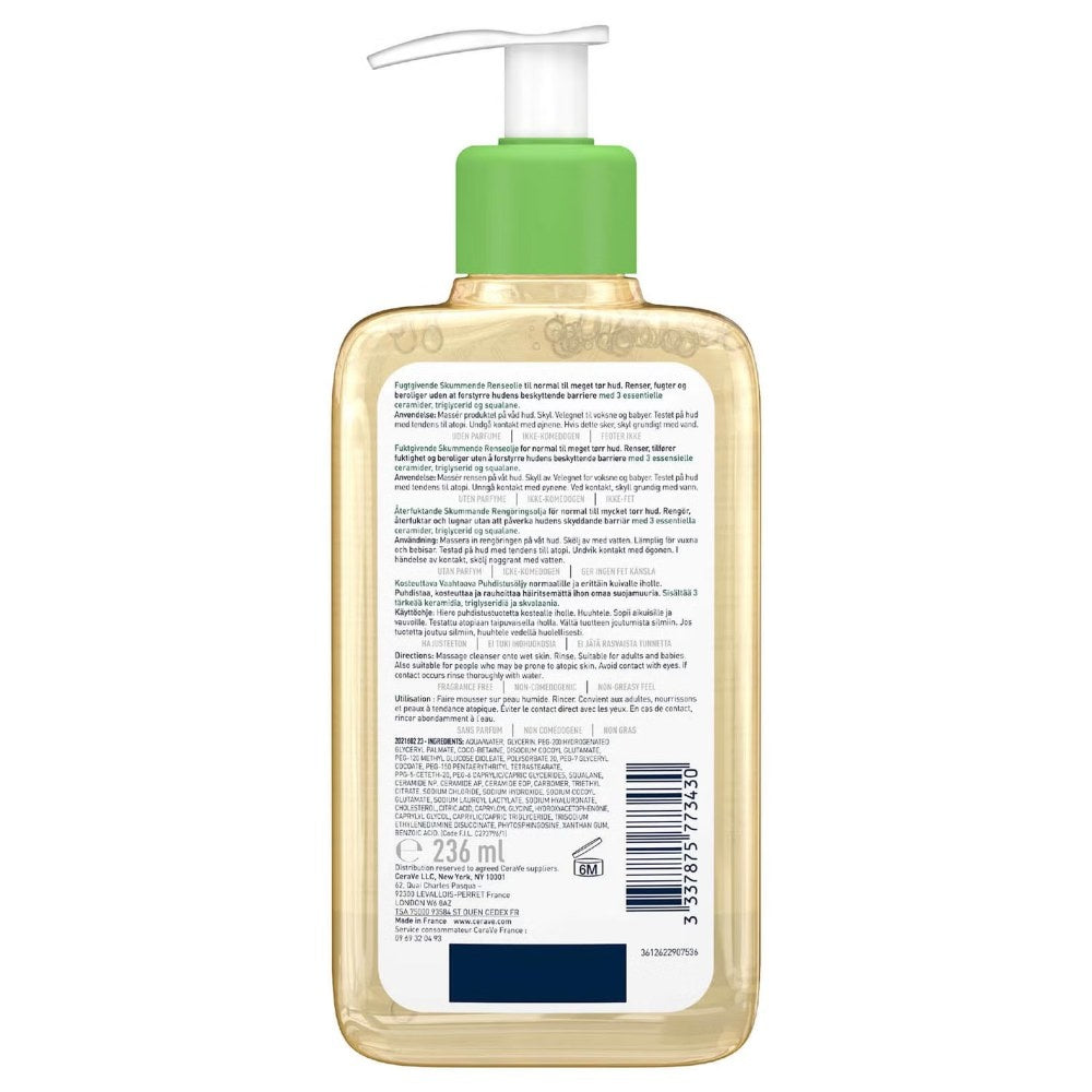 CeraVe Hydrating Foaming Oil Cleanser is verkrijgbaar in een verpakking van 236 en 437 ml.
