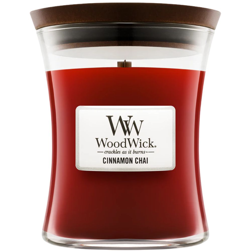 Wil je meer weten over de WoodWick Cinnamon Chai Medium Candle?