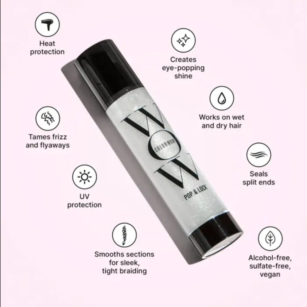 De Color Wow Pop & Lock High Gloss Finish maakt je haar superglanzend, glad en pluisvrij. Je lokken krijgen een gezonde, luxueuze glans.