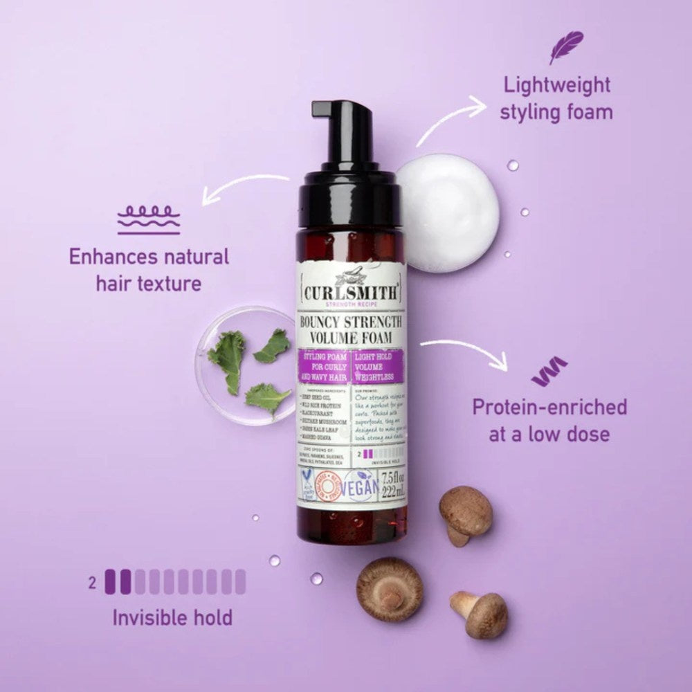 Wat zijn de belangrijkste kenmerken van de Curlsmith Bouncy Strength Volume Foam?