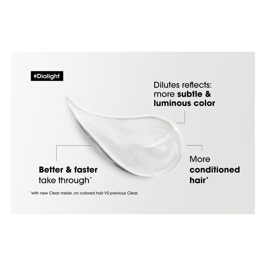 Loreal Dia Light Clear is een toevoeging voor de Dialight kleuren om het meer glans te geven. Voor gevoelig haar en haar dat eerder chemisch behandeld is.De Dia Light Clear Haarkleuring is perfect voor gebleekt en kwetsbaar haar. Deze transparante kleurformule is ideaal voor het creëren van een kleur op maat. Combineer de Clear variant met andere Dia Light tinten om jouw ideale kleur te bereiken. Je haar krijgt niet alleen een prachtige kleur, maar ook een schitterende glans.