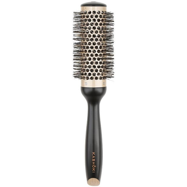 De KASHŌKI Essential Round Brush - 35mm maakt je haar soepel, pluisvrij en glanzend met een natuurlijke beweging en subtiele volume aanzet.