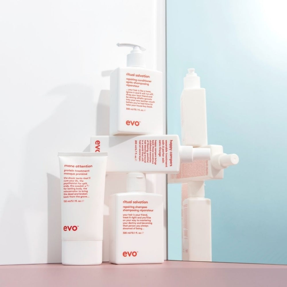 De EVO Happy Campers Wearable Treatment maakt je haar gladder, sterker en glanzender, terwijl het beschermd wordt tegen de zon én sneller droogt tijdens het föhnen.