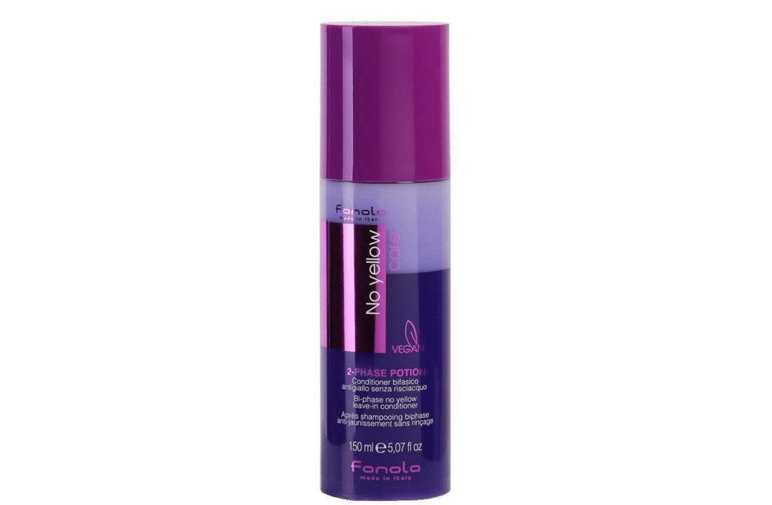 Fanola No Yellow Shampoo bevat paarse pigmenten, waardoor de gele tint uit het haar verdwijnt. Fanola is de meest populaire shampoo die gebruikt wordt in blond (geblondeerd), highlights, coupe soleil, balayage of grijs haar en is bedoeld om die mooie koele kleuren (ijs, as en grijstinten) langer te behouden. Fanola No Yellow Care 2-Phase Potion Leave-in Conditioner Spray is een leave-in conditioner voor blond, gebleekt of grijs haar. De conditioner minimaliseert de gele gloed en laat je haren zijdeachtig, vitaal en gezond aanvoelen. De leave-in spray ontwart en hydrateert je haren zonder het te verzwaren. Daarnaast gaat de spray ook pluis tegen.