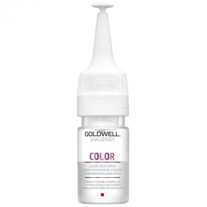 Goldwell Dualsenses Color Lock Serum is een zeer fijne, gewichtloze verzorging voor elk gekleurd haartype. Goldwell Dualsenses Color Lock Serum gaat vervaging van de kleur tegen, waardoor de kleur veel langer mee gaat. Dit zeer fijne serum bevat ColorChromaComplex en kleurbeschermende granaatappelextracten. Goldwell Dualsenses Color Lock Serum beschermt het haar tegen hitte en heeft een heerlijke fruitige geur.