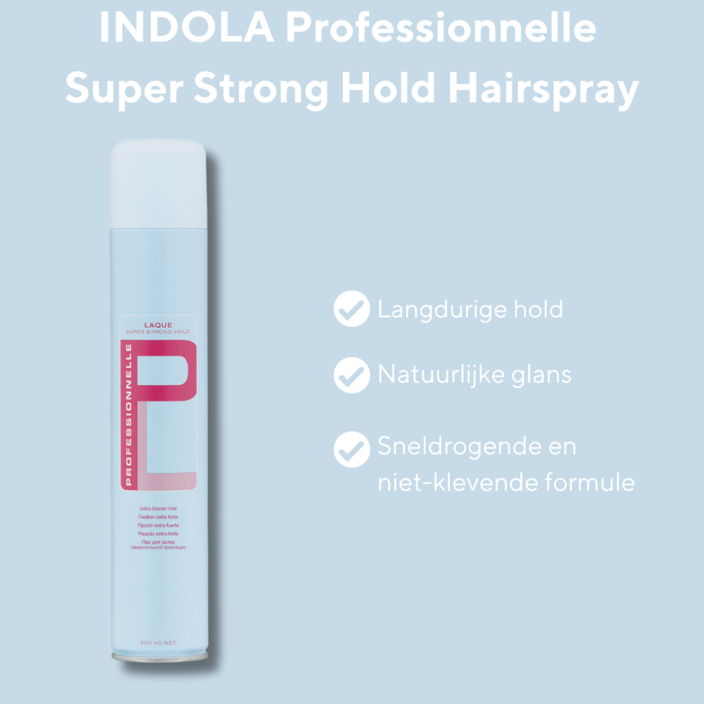 De Indola Professionnelle Super Strong Hold Laque is een gamechanger als het gaat om haarlak. Hier zijn de highlights: