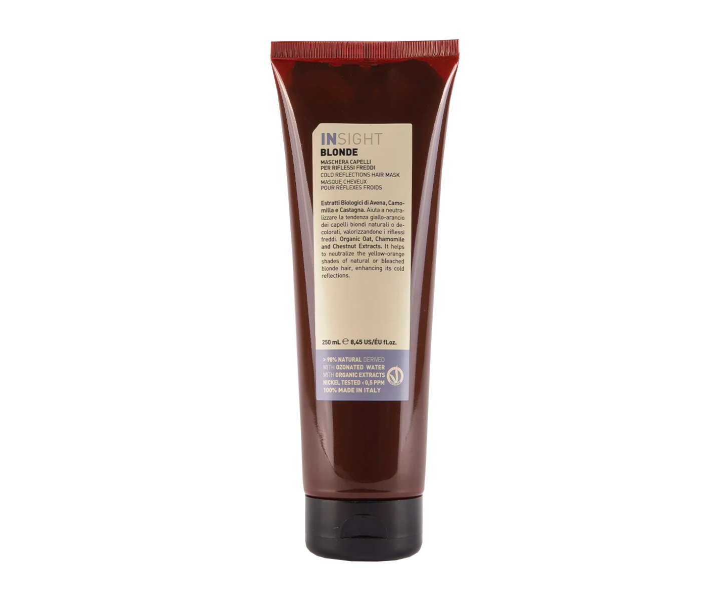 De producten uit deze set van Insight zijn speciaal ontwikkeld om gele of warme tonen in blond, gebleekt of grijs haar te elimineren. De natuurlijke ingrediënten zorgen ervoor dat het haar van binnenuit gehydrateerd wordt en je van een gezonde koele haarkleur kan genieten. De shampoo heeft een milde reiniging en bevat paarse pigmenten om warme tinten in blond gekleurd of grijs haar te verwijderen. Het voedende haarmasker verwijdert gele en oranje tinten en zorgt ervoor dat het haar weer gezond en glanzend aanvoelt. De producten zorgen ervoor dat de koele toon behouden wordt en het haar diep wordt verzorgd door de voedende eigenschappen van organisch haverextract, kamille-extract en kastanje-extract. De producten zijn zonder parabenen en sulfaten geformuleerd en volledig vegan & cruelty free.