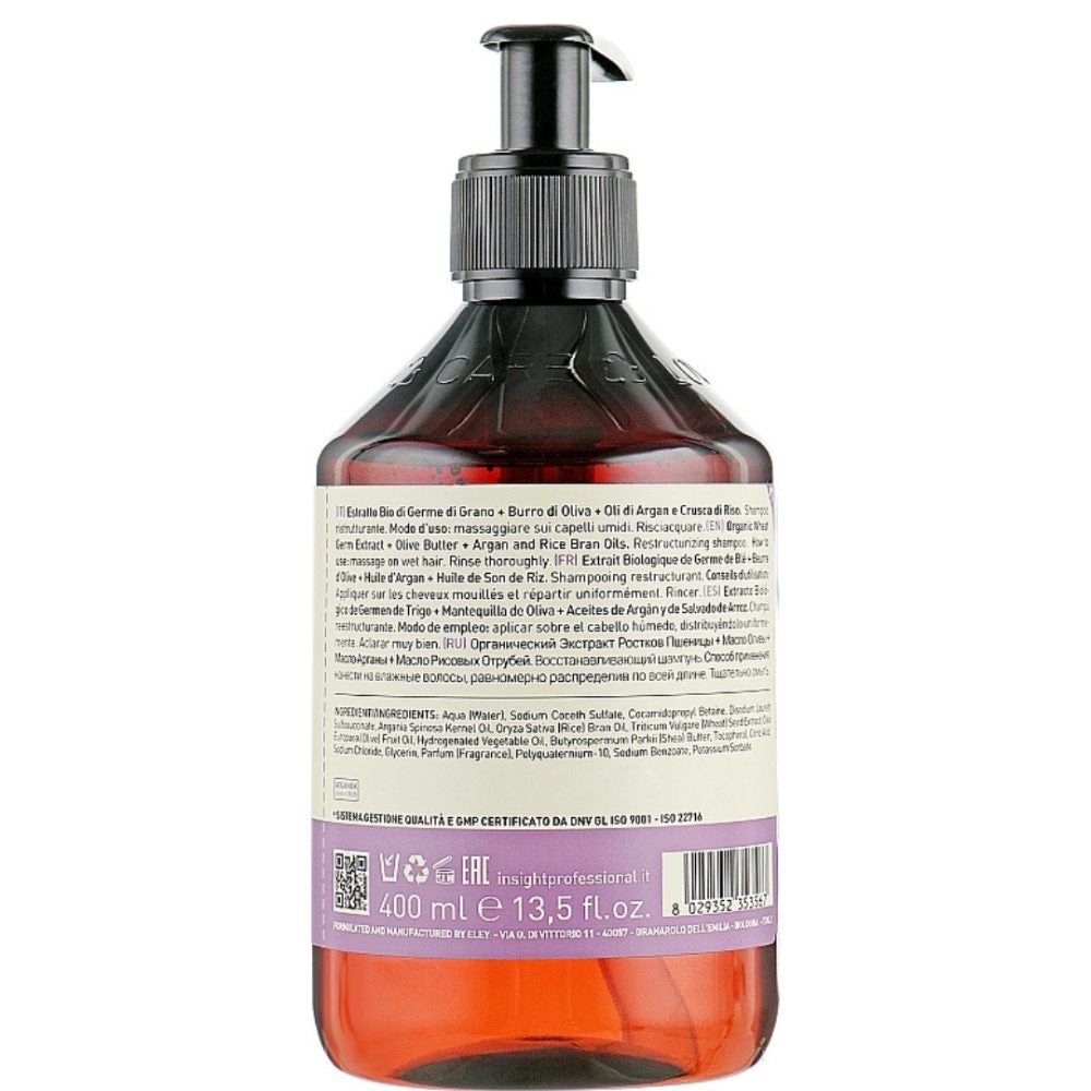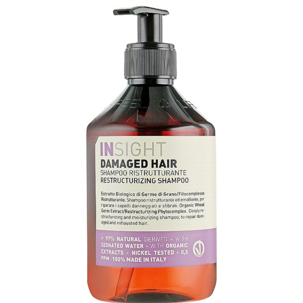 De Insight Damaged Hair Restructurizing Shampoo is een shampoo die het haar kan herstellen en ervoor zorgt dat het glanzend en zacht achter wordt gelaten. De shampoo heeft een voedende formule die rijk is aan actieve ingrediënten en laat het haar na gebruik er weer helder, elastisch en volumineus uitzien. De shampoo verzacht de haarvezel en versterkt de glans. De shampoo is ideaal voor beschadigd, gestrest haar en verbetert de conditie van het haar. De formule is verrijkt met organisch tarwekiemextract en herstellend fytocomplex. Dit bestaat uit olijfboter, arganolie en rijstzemelenolie. De shampoo is net als alle andere producten van Insight vrij van minerale olie, parabenen, kleurstoffen, siliconen en allergene geuren. Daarnaast zijn alle producten van Insight vegan en nikkel getest.
