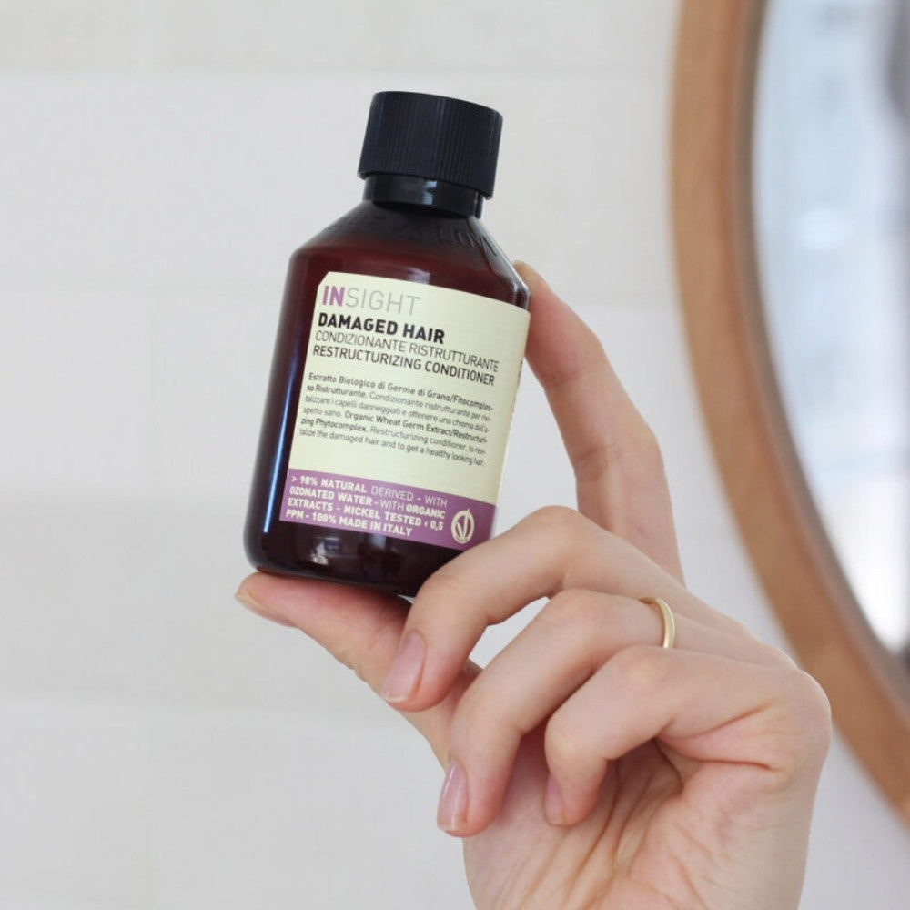 De Insight Damaged Hair Restructurizing Conditioner is een diep voedende conditioner, speciaal ontwikkeld voor beschadigd haar. De conditioner herstructureert het haar met organische extracten als tarwekiemextract, olijfboter, arganolie en rijstzemelolie. Deze ingrediënten zorgen ervoor dat jouw haar er weer geweldig uit gaat zien en aanvoelt. Na gebruik is het haar weer zacht en glanzend zoals je eerder gewend was. Insight Restructurizing Conditioner versterkt de haarbol. Daarnaast verbetert het ook de helderheid, elasticiteit en het volume! Natuurlijk is deze conditioner, net als alle andere producten van Insight, vrij van minerale oliën, parabenen, kleurstoffen, siliconen en allergenen. Het product is gemaakt uit zo veel mogelijke biologische ingrediënten.