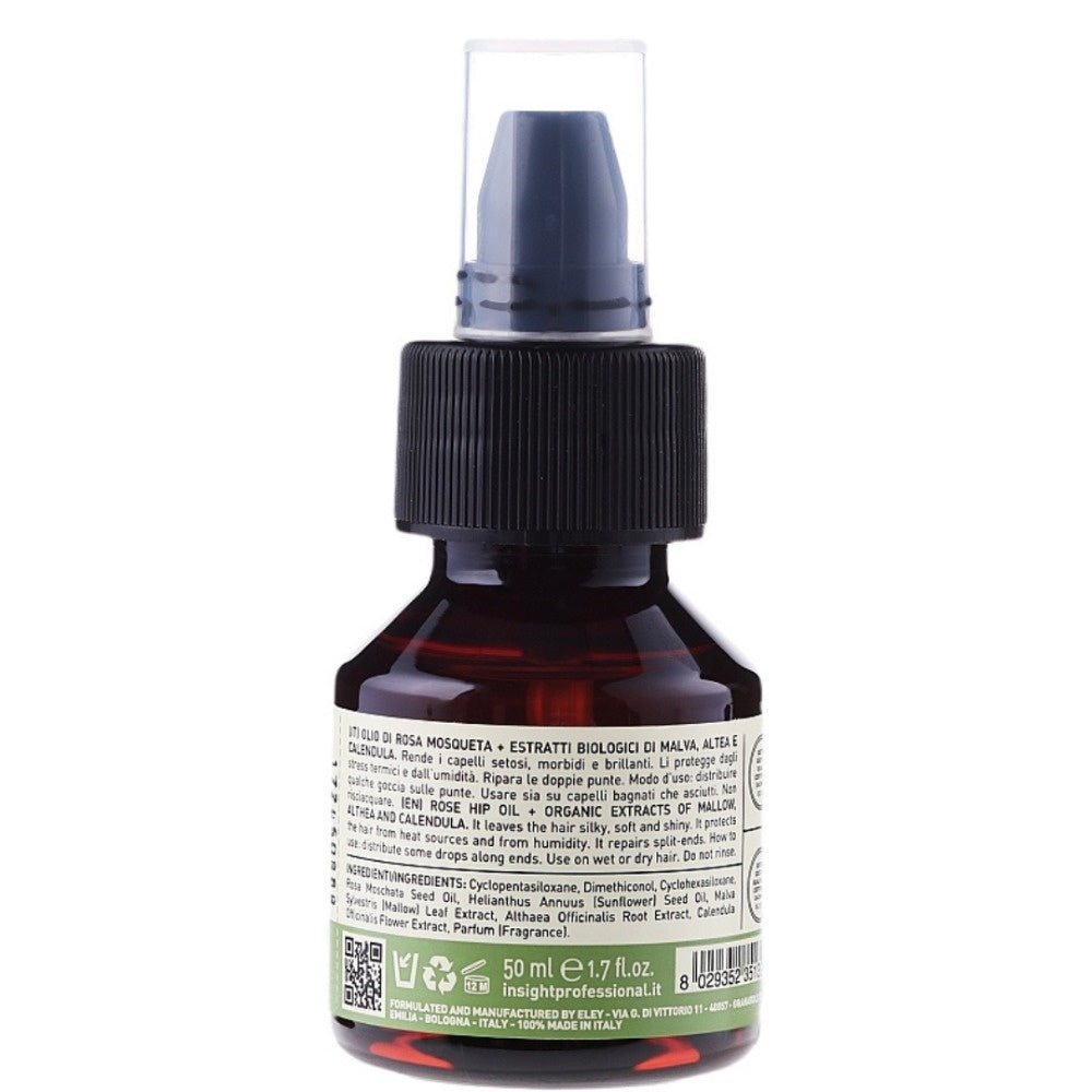 Insight Styling Hair Repair Complex is speciaal ontwikkeld om het haar te hydrateren en het zijdezacht en glanzend achter te laten. Het product bevat alleen biologische ingrediënten en is ideaal om het haar gezond en pluisvrij te houden. Het herstellend en beschermend serum helpt gespleten haarpunten te voorkomen en beschermt tegen vocht en weersomstandigheden. Het serum is ideaal om het haar gezond en pluisvrij te houden. Het Hair Repair Complex bevat rozenbottelolie en een organisch fytocomplex met een herstellende werking, gemaakt van organische mallow, althaea officinalis en calendula-extracten. De formule voorkomt pluizig haar, beschermt tegen vochtigheid en maakt het haar makkelijker doorkambaar. Alle Insight producten zijn cruelty-, parabenen- en siliconenvrij & 100% vegan.