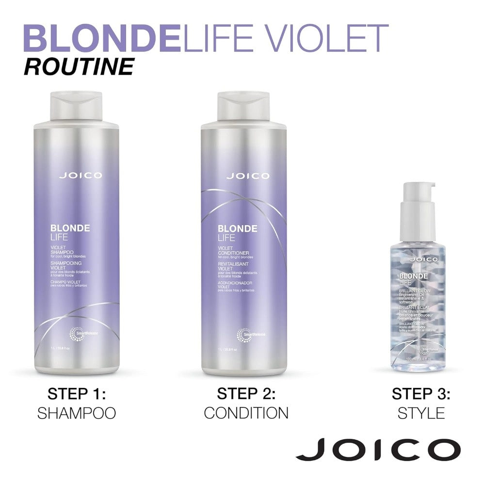 Joico Blonde Life Violet Shampoo is een heerlijke zilvershampoo die je haren een milde reiniging geeft. De zilvershampoo neutraliseert de geel- en kopertonen en versterkt en behoudt juist de koele tonen in je haar. Door de Tamanu- en Monoï oliën krijgt je haar ook een intense verzorging. Door de Joico Blonde Life Violet Shampoo heb jij nooit meer last van geel- en kopertonen in je haar.
