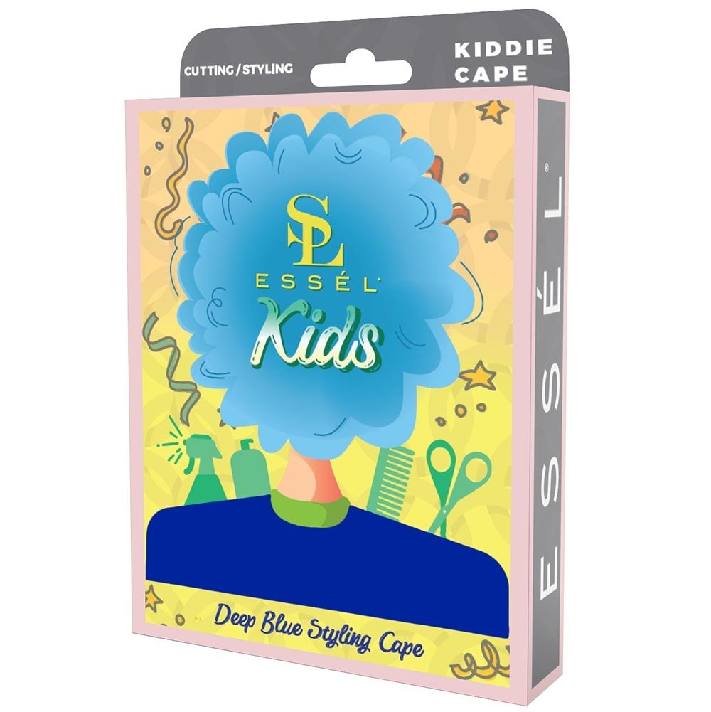 De Essel Deep Blue Styling Cape met drukknopen is een ideale styling cape voor het knippen en stylen van kinderen. Het product is speciaal ontwikkeld voor kinderen en is verkrijgbaar in meerdere kleuren en prints, voor ieder kind wat wils! Daarnaast is het gemaakt van 100% polyester en voorkomt het statisch haar. De waterdichte halslijn zorgt ervoor dat het water wat eventueel in de huid kan druipen wordt opgevangen. Deze waterafstotende kapmantel heeft een mooie diepblauwe kleur en een speelse vormgeving.