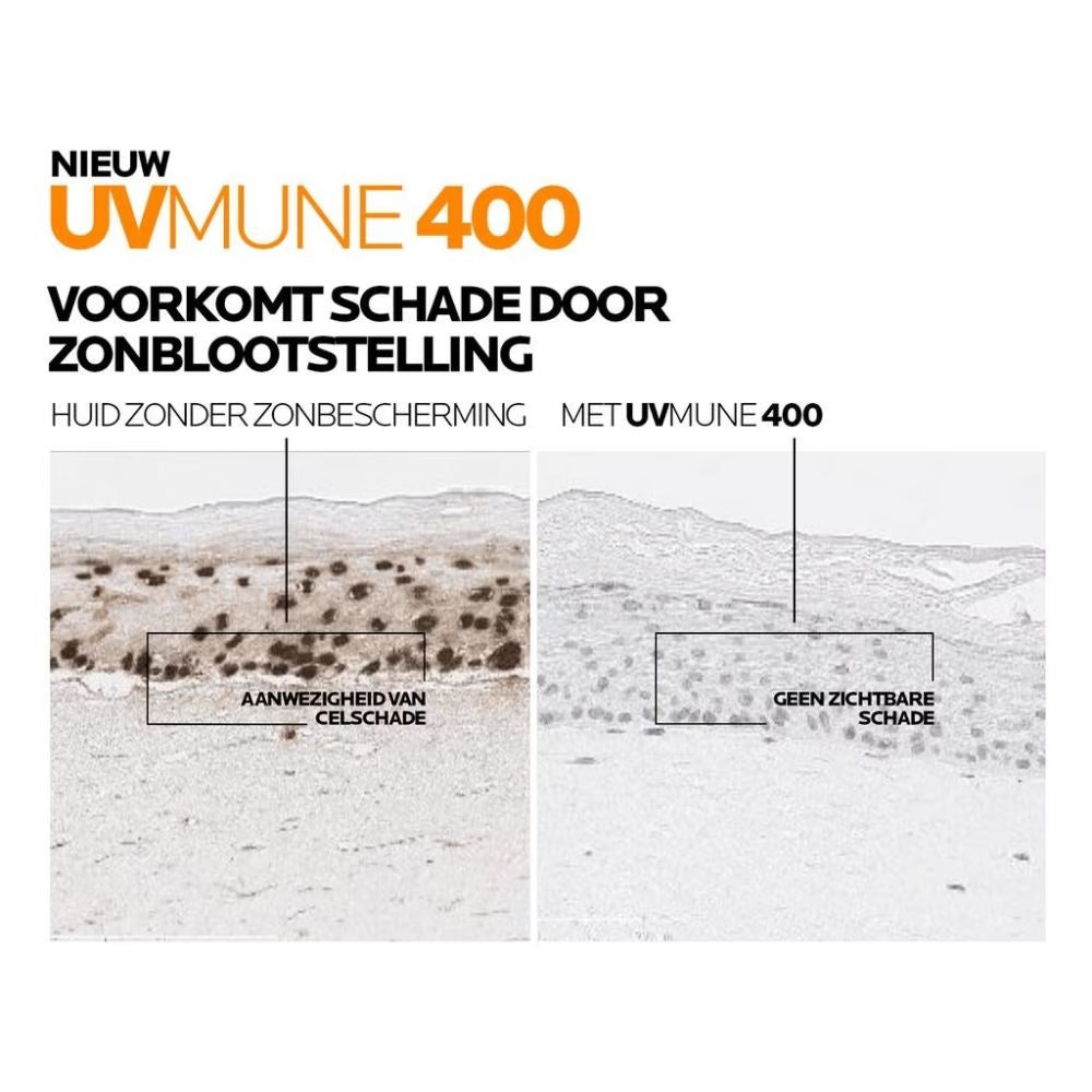 La Roche-Posay Anthelios UVmune 400 Tinted Fluid SPF50+ is een getinte zonnefluide met hoge spf zonbescherming. De zonnebrand is geschikt voor alle huidtypes en beschermt tegen UVA, UVB en infrarood. Het heeft een lichte formule voor een natuurlijke look met een transparante getinte finish. Het product voelt niet vettig aan en plakt niet. Het beschermt tegen celbeschadiging en is verrijkt met krachtige ingrediënten en technologieën. 97% van de huid voelt gehydrateerd aan en 99% van het product wordt snel geabsorbeerd.  Het product is dermatologisch getest en hypoallergeen.