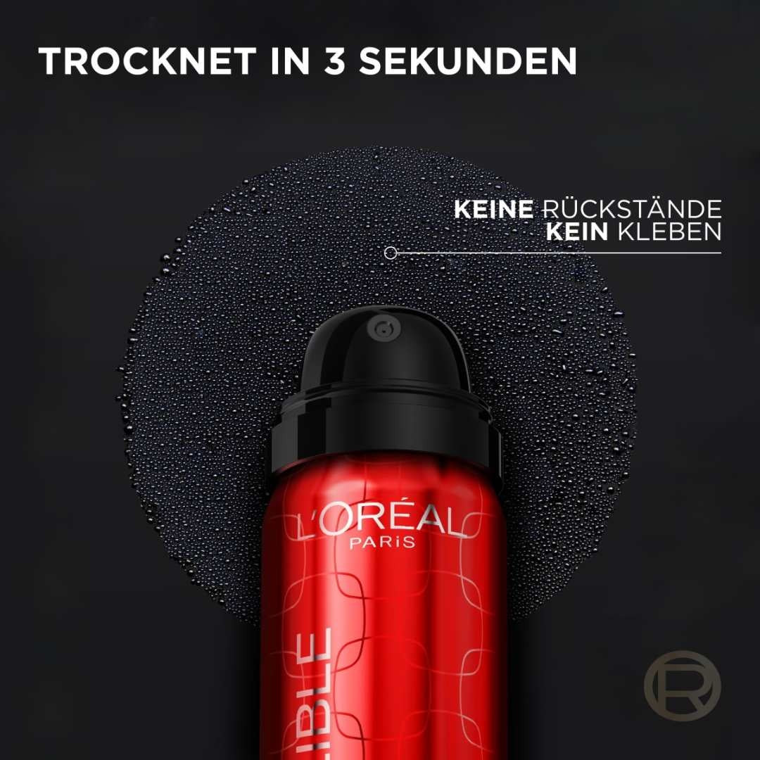 De L'Oréal Paris Infaillible 3-Second Setting Mist maakt je make-up langdurig fris en stralend, zonder uit te lopen of vlekken achter te laten. Je look blijft tot 36 uur perfect zitten, zelfs bij blootstelling aan water, hitte of zweet.