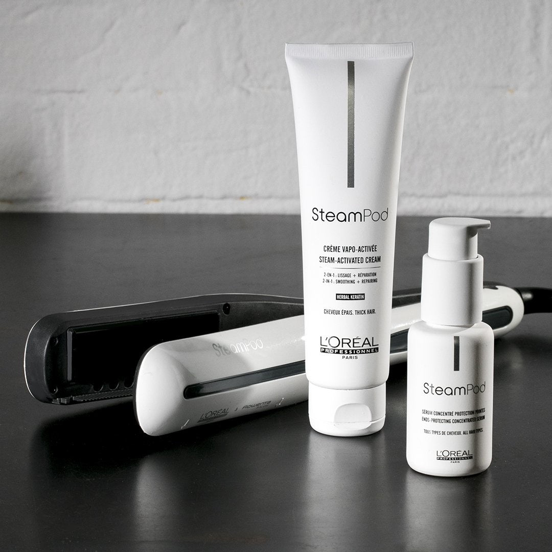 Voordat je aan de slag gaat met de L'Oreal Steampod 3.0 is het van belang dat je eerst in de weer gaat met bijbehorende haarproducten. He mooie is is dat de L'Oreal Steampod 3.0 op stoom werkt en hierdoor je haarschubben open gaat staan. Daar moet natuurlijk gebruik van worden gemaakt, als je de bijbehorende producten gebruikt worden ze écht goed opgenomen in het haar. De bescherming en verzorging wordt als het ware in je prachtige haren geperst, wat resulteert in gezond en goed gevoed haar na het stijlen. Laat dat nou precies zijn wat je wilt! Je kunt het beste de Steampod Smoothing Treatment hiervoor gebruiken!