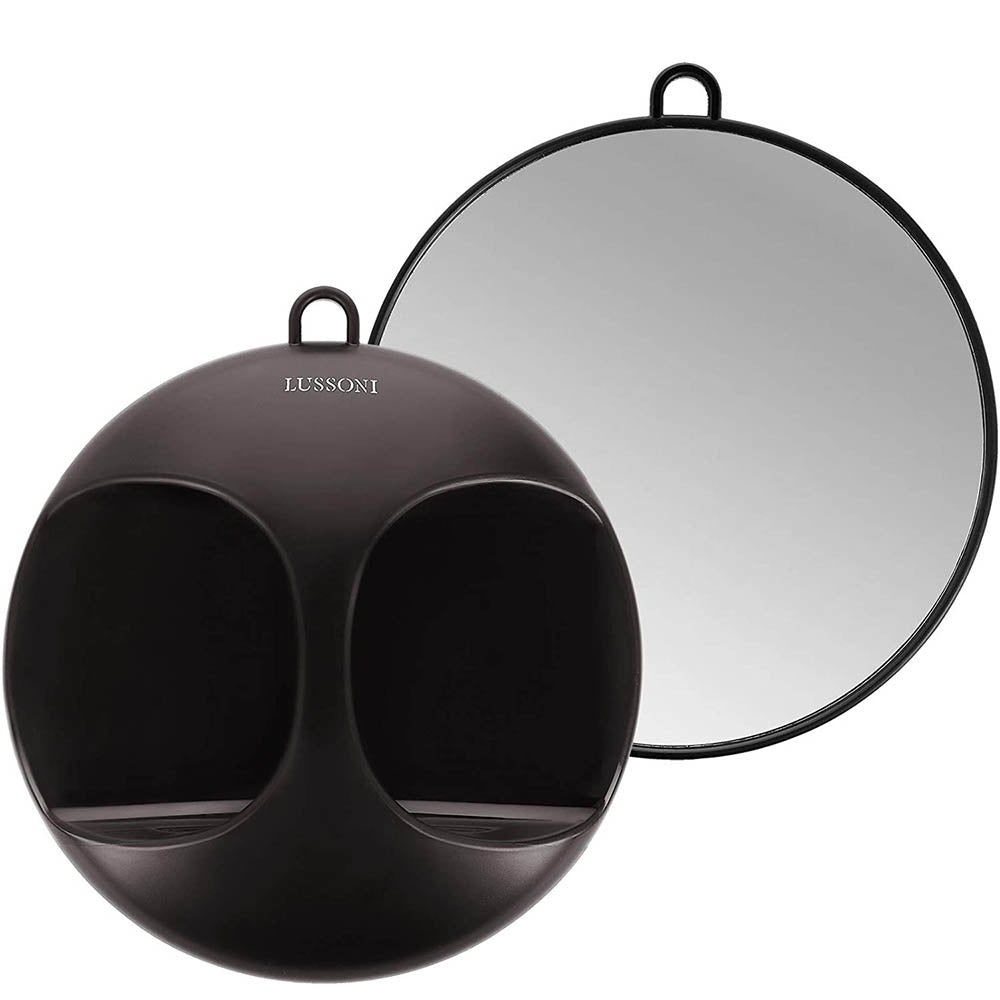 Lussoni Handspiegel Elegant 29cm is een musthave voor kappers en ook handig voor in huis. De handspiegel helpt de klant bij het bekijken van de achterzijde van het net gekapte haar. Altijd lastig om je haar van de achterzijde te bekijken? Dat is met deze multifunctionele zwarte handspiegel een eitje. Het haar zal zowel aan de voorzijde als de achterzijde prachtig kunnen worden gestyled. De handspiegel heeft een diameter van 29cm. Dankzij de handige greep is de spiegel makkelijk vast te houden tijdens het laten zien van het kapsel. De spiegel is groot maar licht van gewicht. Het is de ideale functionele aanvulling op grote wandspiegels. De spiegel heeft ook een handvat waarmee het aan de muur kan worden opgehangen. De spiegel van Lussoni heeft een minimalistisch design, zodat het in elk interieur past.