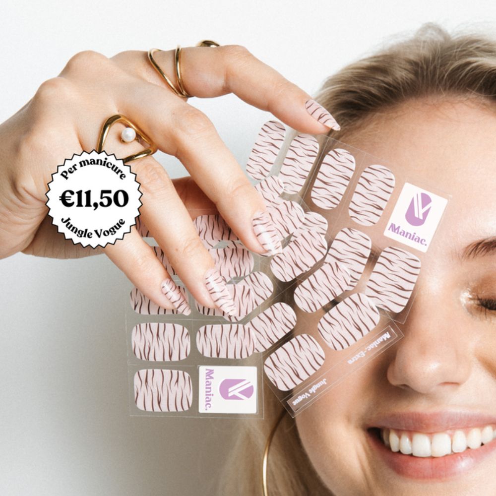 Tijd voor iets anders dan nude of rood? De Maniac Nails Jungle Vogue Polish Sticker is er voor een opvallende, stijlvolle manicure. Deze gellak-sticker heeft een moderne, tijger bruine look die nét even wat spannender is dan standaardkleuren en toch classy blijft. Perfect voor de herfst, een fashion-forward look óf wanneer jij gewoon zin hebt in iets unieks. Binnen 20 minuten heb je een professionele manicure die tot wel 14 dagen perfect blijft zitten, zonder gedoe.
