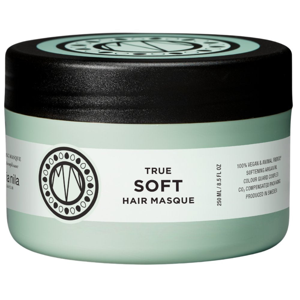 Maria Nila True Soft Masque is speciaal ontwikkeld voor je droge en poreuze haren. De arganolie, die dit masker bevat zorgt ervoor dat je haren gehydrateerd en gerevitaliseerd worden en het laat je lokken zijdezacht achter. Maria Nila Palett True Soft Masque bestaat voor 100% uit plantaardige stoffen, oftewel het is 100% Vegan! Het prachtige  Colour Guard Complex beschermt je lokken en het vermindert kleurverlies. Deze conditioner bevat geen sulfaten en parabenen.