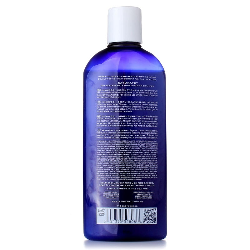 De Dermatologisch geteste formule van Mediceuticals Saturate Shampoo is zeer effectief en verminderd niet alleen een droge hoofdhuid, maar helpt ook bij het tegen gaan van dunner wordend haar en haaruitval.