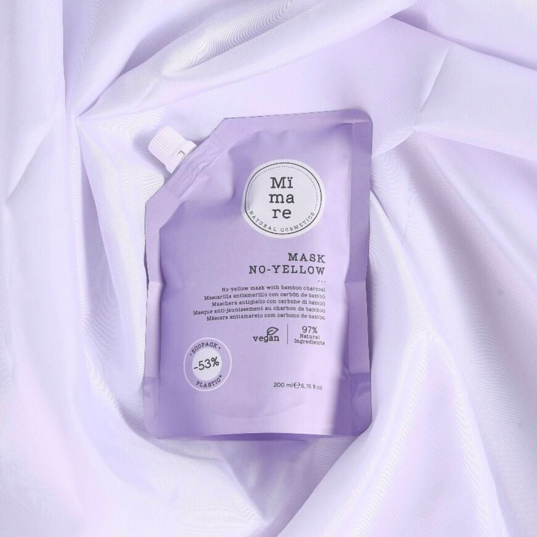 De Mïmare No Yellow Mask maakt je haar koel van toon, zijdezacht en glanzend – zonder gele gloed én met een duurzame formule en verpakking waar je haar én de planeet blij van worden.