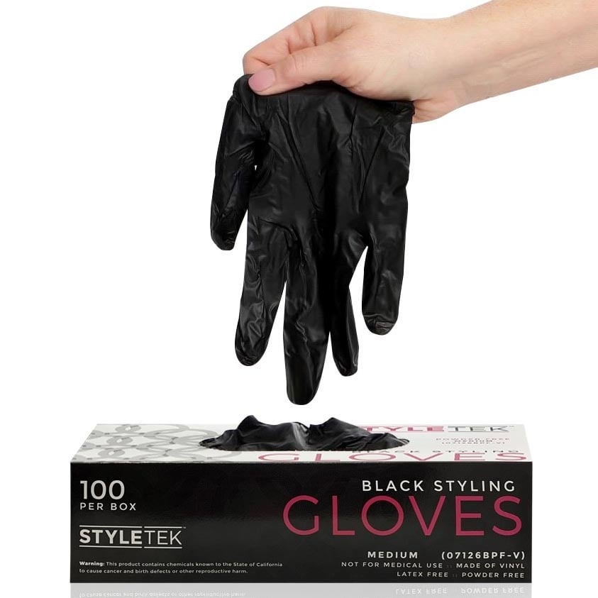 Styltek Vinyl Poedervrije Wegwerp Handschoenen Zwart zijn van een zacht materiaal met een comfortabele pasvorm en een optimale allergievrije bescherming. De handschoenen bevatten geen latex en zijn speciaal gemaakt voor kappers voor een goed draagcomfort. Dit product komt uit America waar de producten erg populair zijn en nu eindelijk ook in Nederland verkrijgbaar.