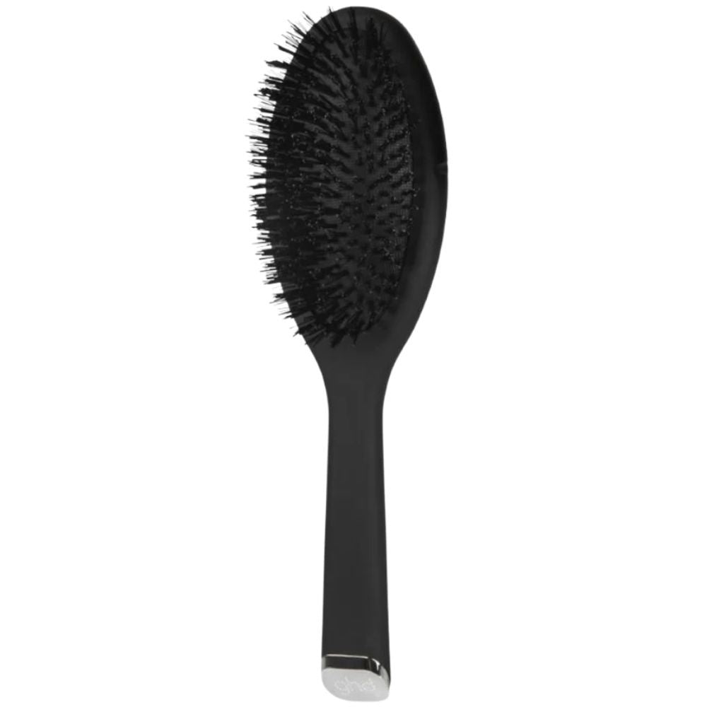 De GHD Oval Brush The Dresser is de borstel waar elke vrouw van droomt. Deze luxe, professionele stylingborstel is ontworpen om golven en krullen te ontspannen, je coupe perfect af te werken én je haar te verzorgen, allemaal in één beweging. Dankzij de antistatische nylon borstelharen glijdt deze borstel moeiteloos door je haar zonder het pluizig te maken, terwijl het je natuurlijke glans naar boven haalt.