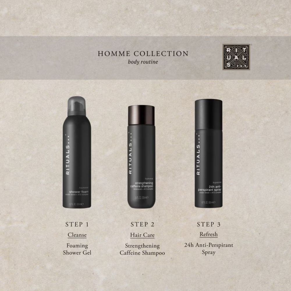 Tip: Breng de deo aan op een schone, droge huid bij voorkeur na het douchen. Voor een extra lange geurervaring combineer je ‘m met The Ritual of Homme Shower Foam uit dezelfde lijn.