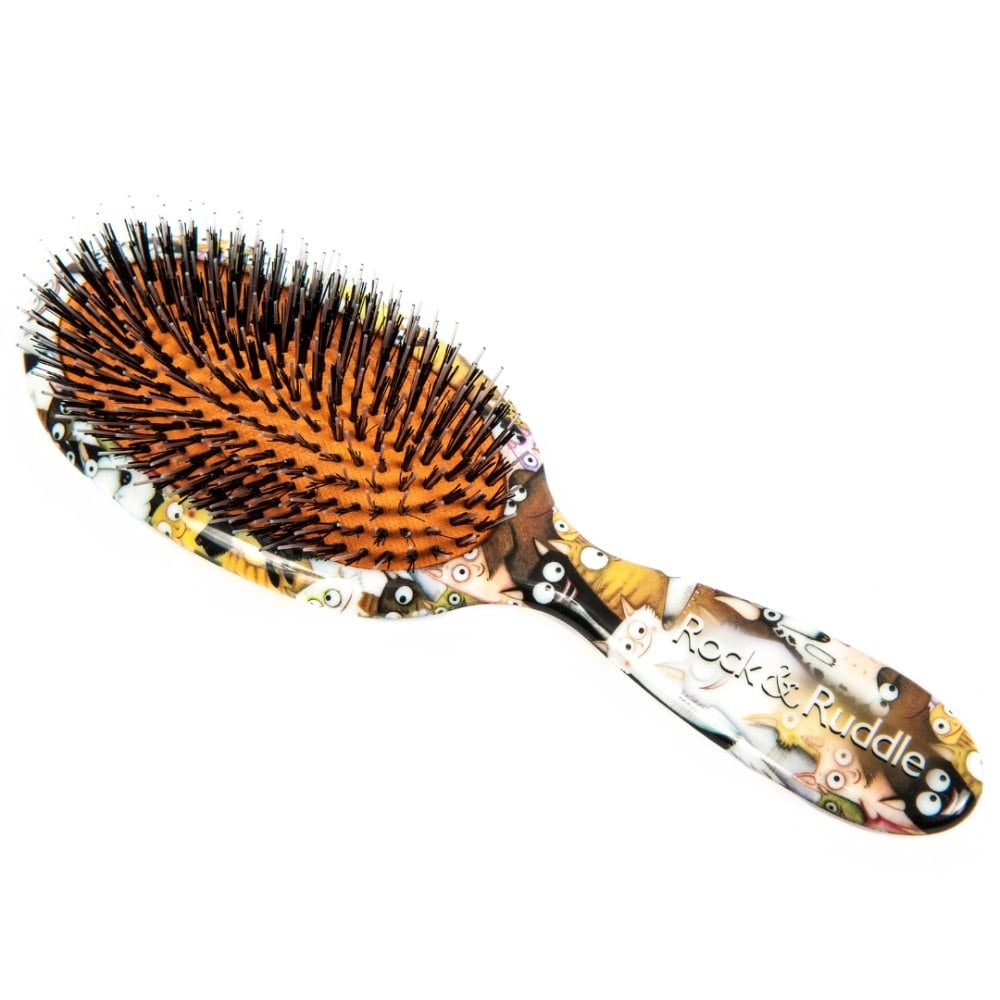 De Rock & Ruddle Haarborstel Cats & Dogs maakt je haar glad, glanzend en gezond. Het voelt zijdezacht aan en ziet er verzorgd uit. Dit is mede te danken aan de borstelharen van zwijnenhaar, deze verdelen de natuurlijke oliën van je haar om je haar extra te verzorgen én te laten glanzen!