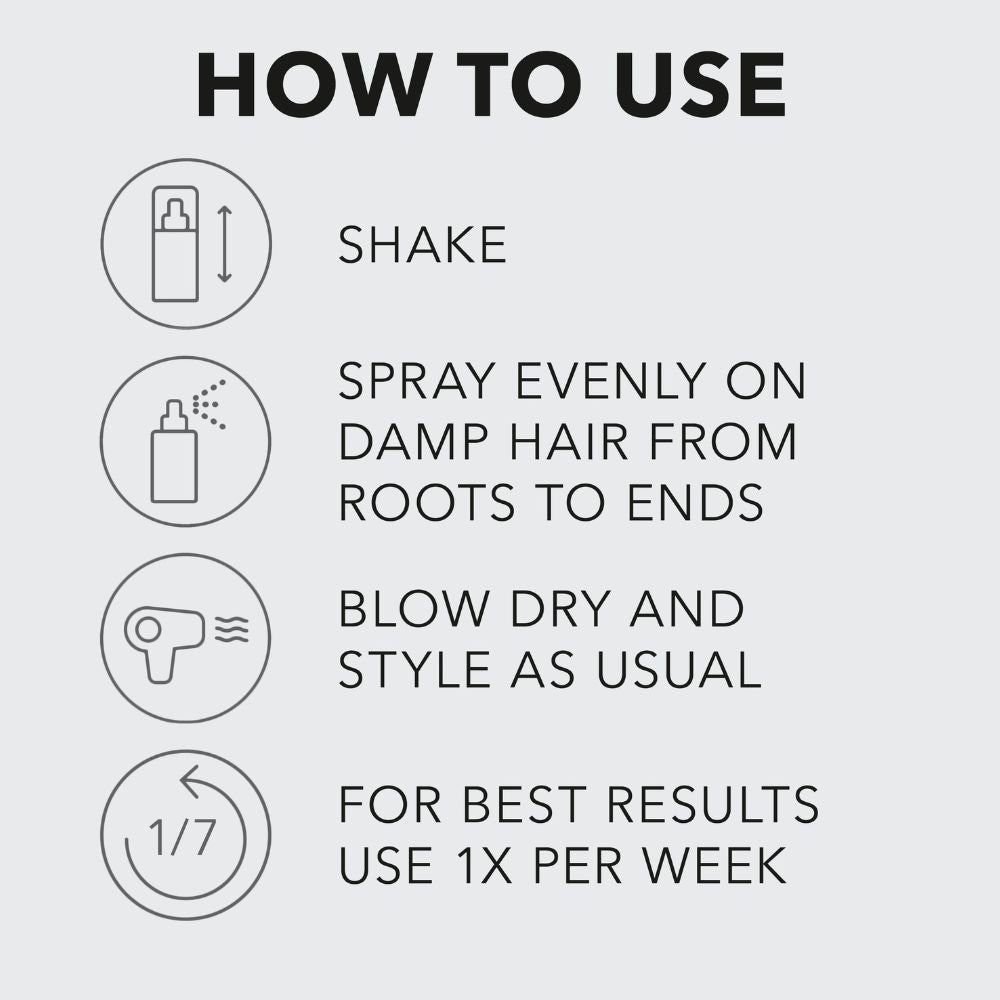 Stap 2: Schud voor gebruik de fles en spray de leave-in gelijkmatig over je handdoekdroge haar, vooral op de lengtes en punten.