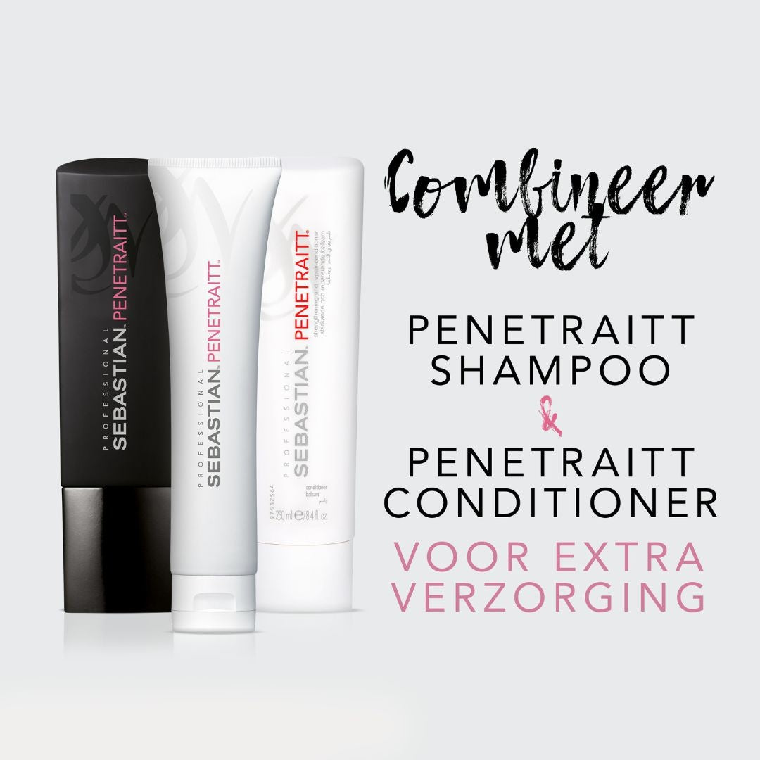 Breng het Sebastian Penetraitt Masque aan nadat je het haar hebt gewassen. Voor het wassen van je beschadigde haar raden we je de Sebastian Penetraitt Shampoo, uit dezelfde lijn van Sebastian aan.