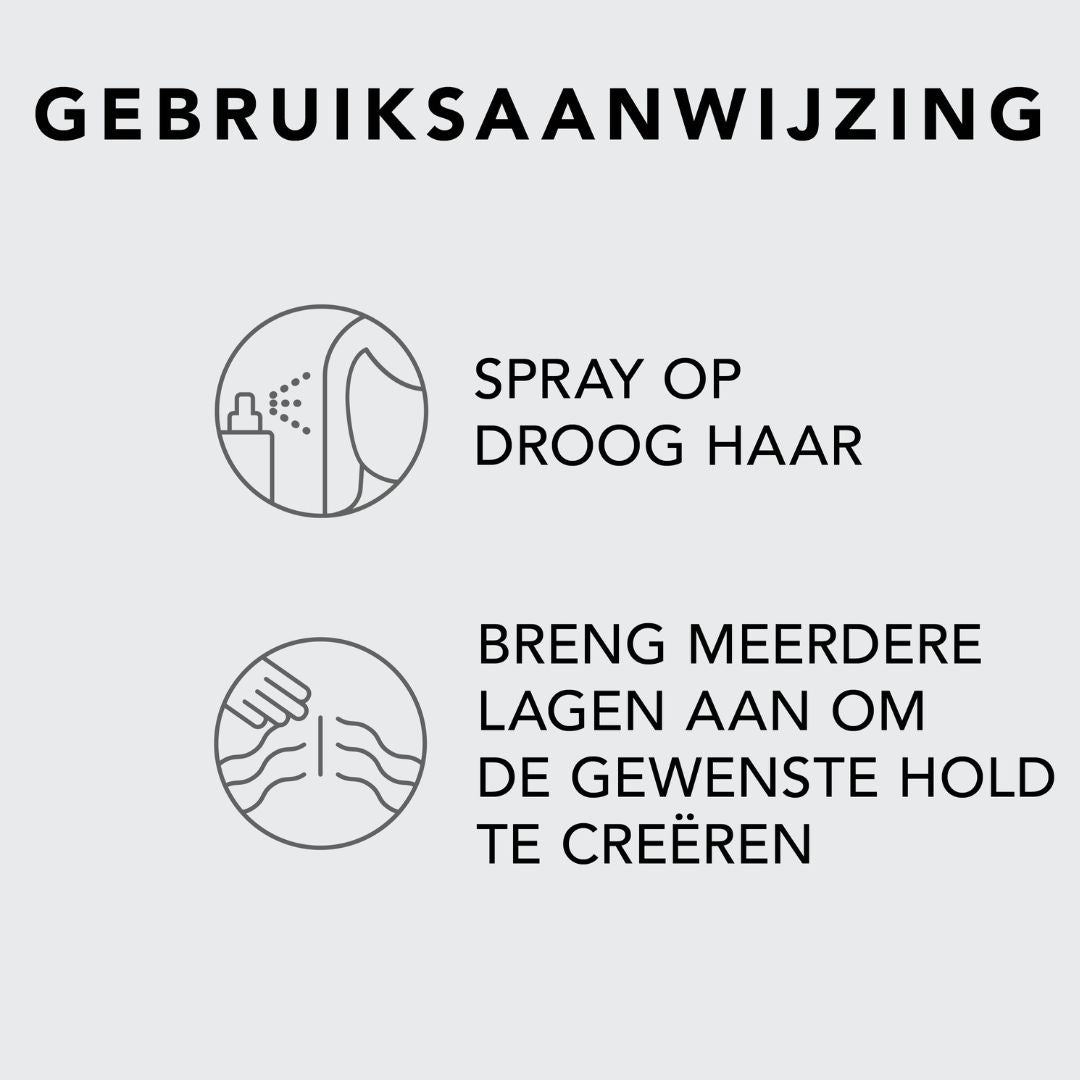 Met deze spray blijft je haar de hele dag mooi in model en is makkelijk te restylen. Naast de sterke hold geeft het je look een prachtige glans en laat het geen plakkerige laag achter!