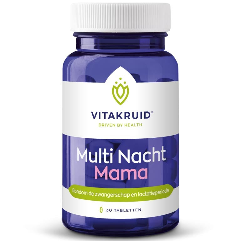 Vitakruid Multi Dag & Nacht Mama is speciaal geformuleerd voor de mama en is één van de weinige voedingssupplementen die rekening houdt met het bioritme. ‘S nachts heeft het lichaam namelijk andere voedingsstoffen nodig dan overdag. De hoge dosering van vitamine B12 activeert de natuurlijke energie zodat jij je overdag fit voelt. De vitamine C bevordert het concentratievermogen en het calcium draagt bij aan de zenuwfunctie. ‘S nachts willen we het lichaam graag helpen om te herstellen. Daarom is de Multi Nacht Mama geformuleerd met vitamine D voor de opbouw van sterke botten. Vitamine A bevordert het herstel van de huid. Met deze Multi Dag & Nacht vitamine haal jij alles uit je dag én nacht!