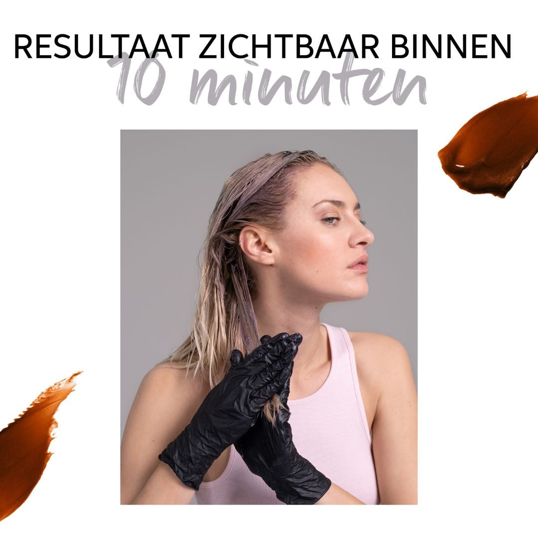 Zorg ervoor dat als je dit masker wilt gebruiken, je handschoentjes draagt. Het masker kan namelijk vlekken op je handen achterlaten. Breng een ruime hoeveelheid van het masker aan op handdoekdroog gewassen haar. Laat vervolgens het masker 10 minuten inwerken, afhankelijk van de gewenste kleurintensiteit. Spoel het masker goed uit en breng je haar in model. Nu ben je good to go!